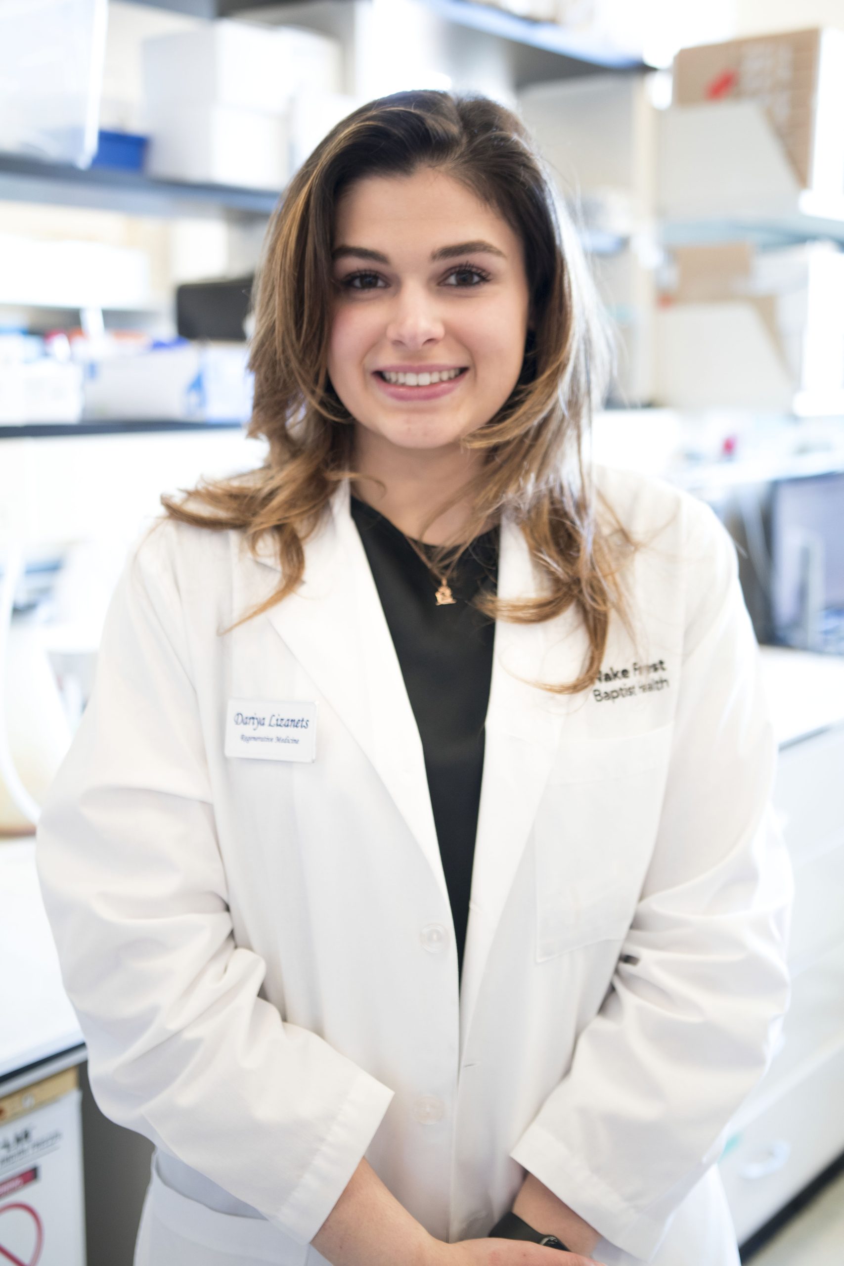 Dariya is a PhD student in Biomedical Engineering at the Wake Forest University School of Medicine. Her research focuses on developing human lung models to improve radiation therapy strategies for lung cancer treatment. Because they use primary human cells, these models more accurately represent the native lung microenvironment and can provide more accurate responses to treatment as compared to other types of models. After Dariya finishes her PhD, she wants to pursue a career that involves translating research into clinical settings.